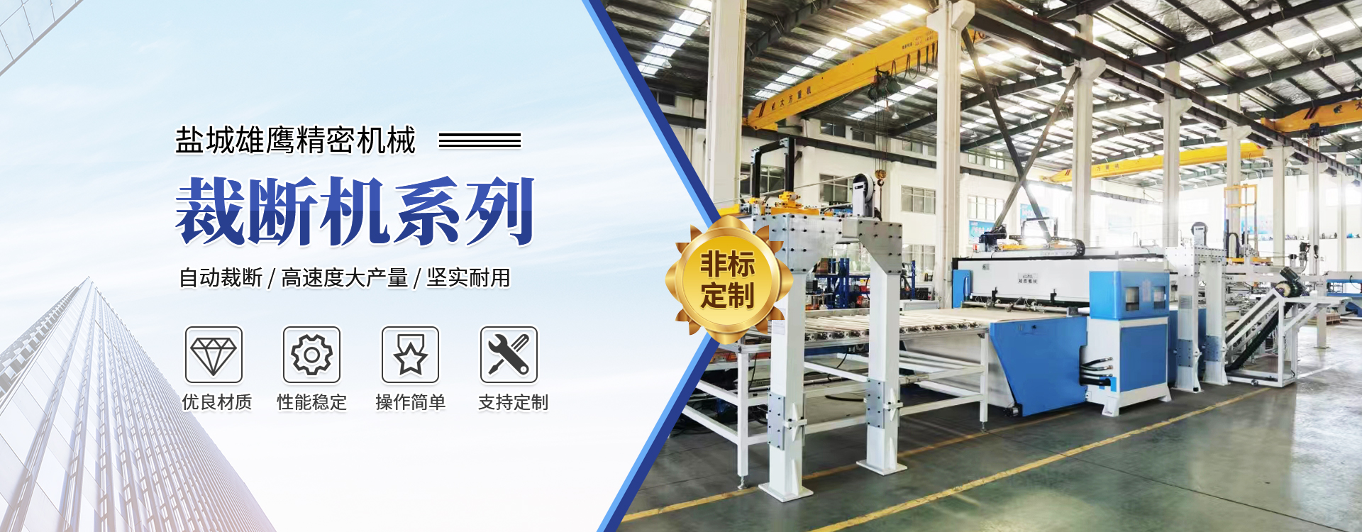 - 國內(nèi)專業(yè)生產(chǎn)各種液壓裁斷機(下料機)、模切機、冷壓機、切片機、多片鋸、壓花機等精密機械和通用機械系列產(chǎn)品的規(guī)模企業(yè)。